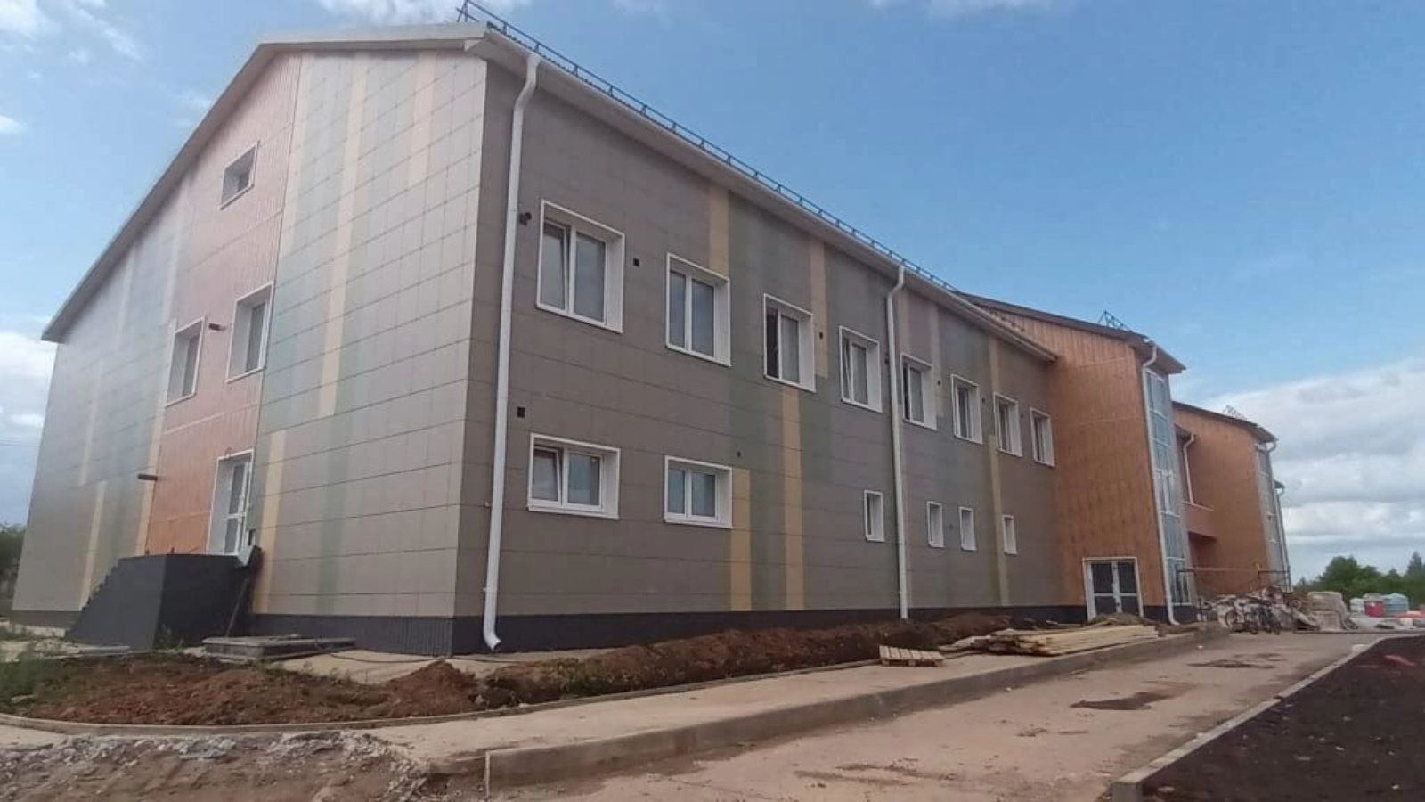 Выполнены работы по монтажу здания, установке окон, устройству кровли, монтажу внутренних инженерных сетей и устройству фасада. Ведутся отделочные работы, монтаж вентиляционной системы и благоустройство территории.