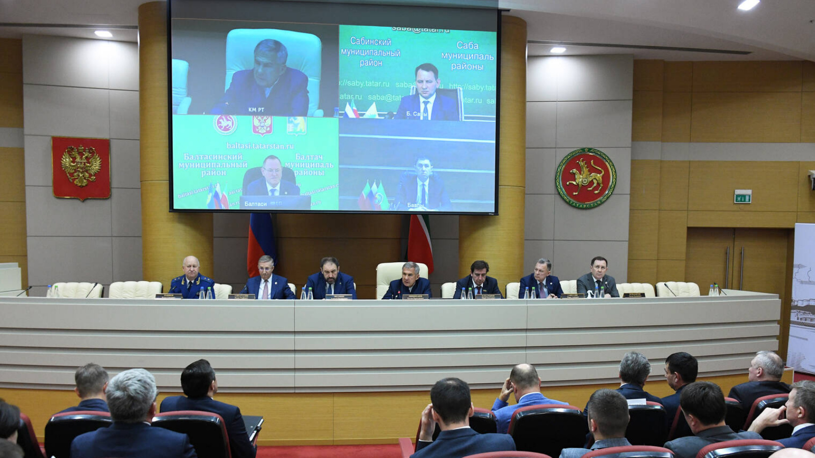 Совещание в режиме видеоконференцсвязи с подключением всех муниципальных образований провёл Раис Республики Татарстан Рустам Минниханов. В работе принял участие Премьер-министр Татарстана Алексей Песошин.