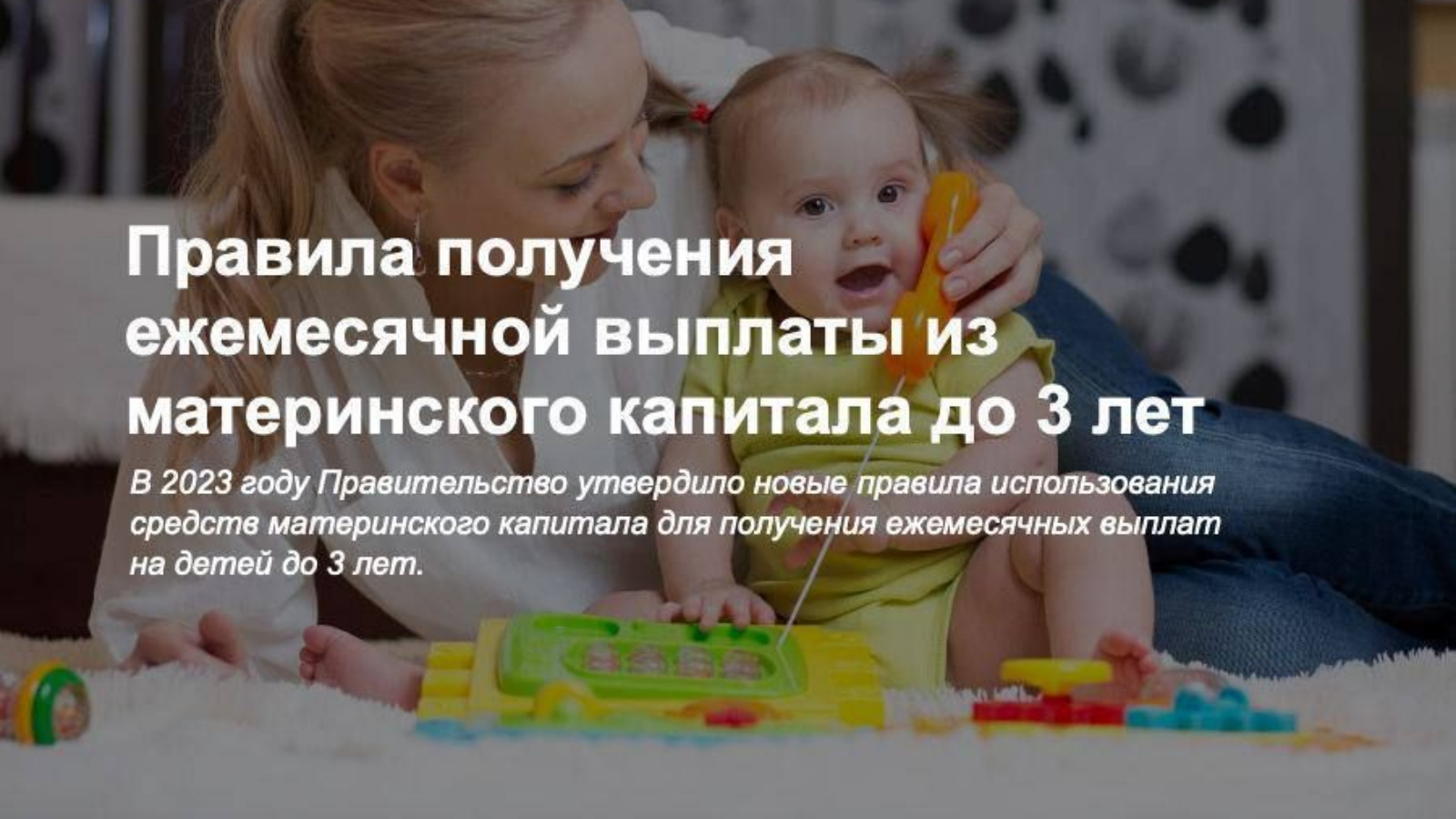 С 2023 года родители могут получить ежемесячную выплату из материнского капитала на каждого ребенка до 3 лет вне зависимости от очередности рождения и количества детей указанного возраста в семье.