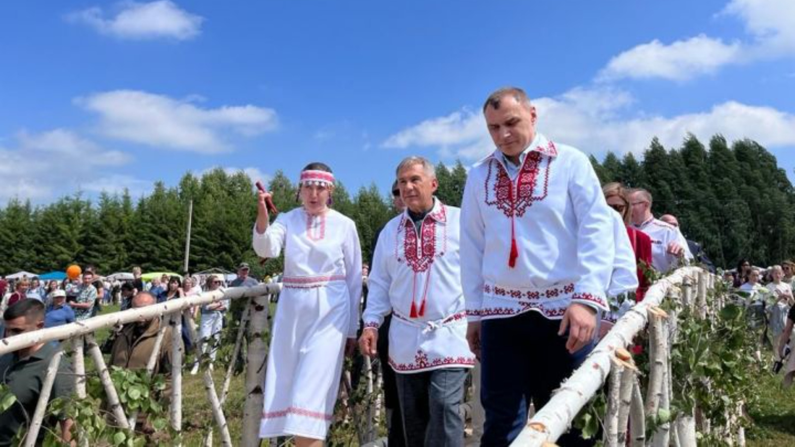 Сегодня Раис РТ Рустам Минниханов и Глава Республики Марий Эл Юрий Зайцев находятся Агрызском районе на 32-м республиканском празднике марийской культуры "Семык-2023".