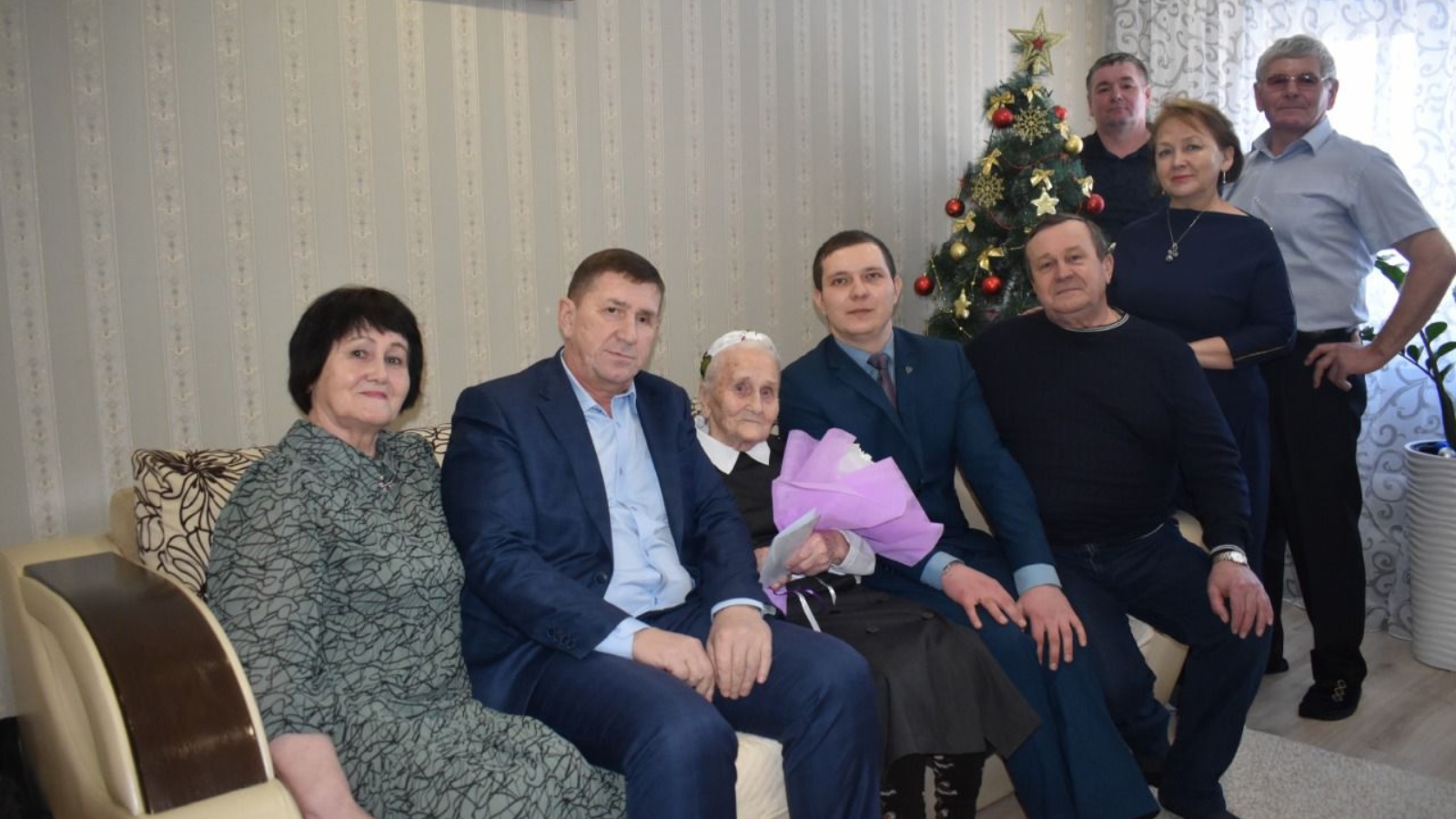 Заместитель руководителя Исполнительного комитета по социальным вопросам Сергей Александров поздравил именницу с 90-летием. Вместе с букетом цветов и словами благодарности вручил поздравительную открытку и подарки.