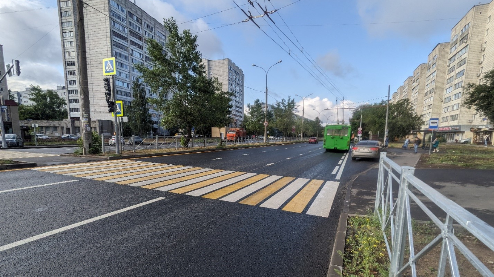 Так, в г. Казани по ул. Гаврилова (от ул. Маршала Чуйкова до пр.Хусаина Ямашева) в Ново-Савиновском района были установлены 27 дорожных знаков, 125 пог.м пешеходных ограждений, 325 пог.м. тротуаров, 2 пешеходных перехода 2 искусственные неровности и 2 автобусные остановки. Эти меры способствуют созданию более безопасной и комфортной городской среды для всех участников дорожного движения.