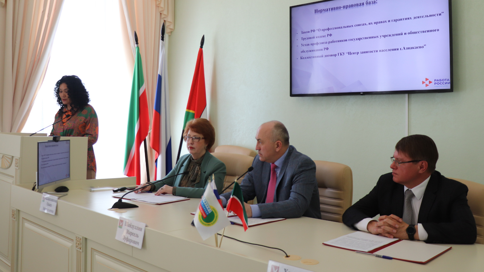 В конференции с докладами о проделанной работе выступили представитель республиканского комитета Общероссийского профессионального союза работников государственных учреждений и общественного обслуживания Российской Федерации по Азнакаевскому муниципальному району Республики Татарстан, руководитель аппарата районного Совета Айдар Халиуллин, директор центра занятости населения г.Азнакаево, внештатный правовой инспектор труда в Азнакаевском районе Лилия Гафиева. Ольга Калашникова высоко оценила работу профсоюзного движения района, выразила благодарность активу за труд, ознакомила с деятельностью и планами Татарстанской республиканской организации.