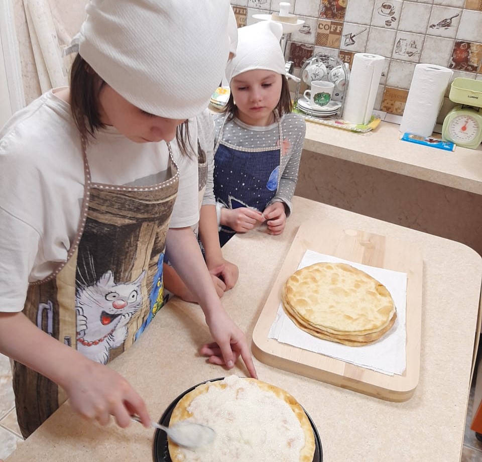 Так, например, на одном из занятий дети познакомились с блюдом татарской национальной кухни – бэлишем. В новогодние каникулы испекли торт «Наполеон» и устроили дружное чаепитие. Также на одном занятии был приготовлен фруктовый салат.
