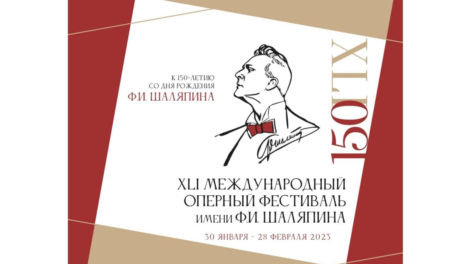 13 февраля 2023 года исполняется 150 лет со дня рождения выдающегося оперного певца, артиста с мировой известностью, уроженца города Казани Федора Ивановича Шаляпина (1873-1938). Юбилейной дате будет посвящен XLI Международный оперный фестиваль , который пройдет на сцене Татарского академического государственного театра им. М.Джалиля с 30 января по 28 февраля. Программа фестиваля включает 10 спектаклей и 2 гала-концерта.