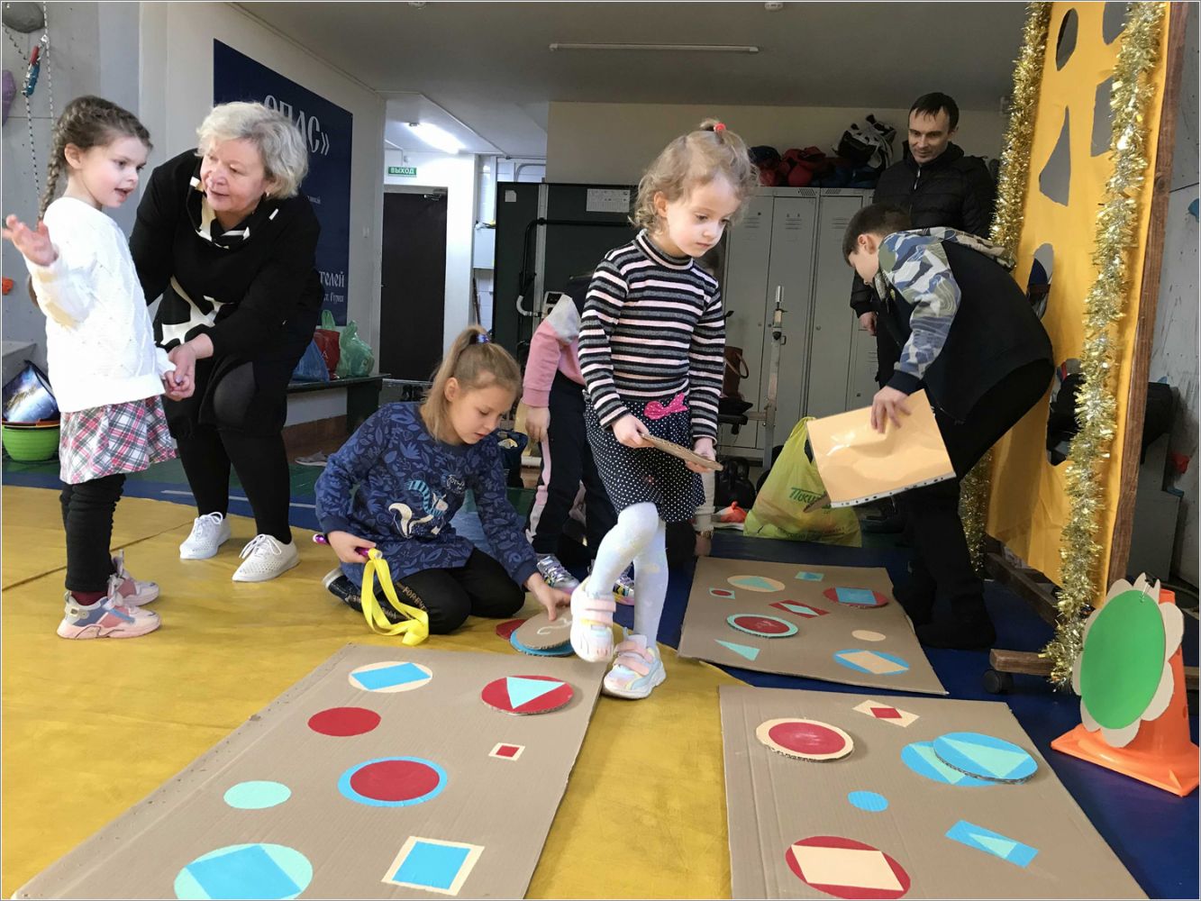 Станция «Попади в цель» — здесь ребята старались попасть мячиком в отверстия на ткани, а на другой станции нужно было пробежать через эти отверстия ногами. «Веселая змейка» — не так-то просто пройти по дорожке из скакалок всей командой, не уронив надувной шарик, и при этом не используя руки. Станция «Веселые блинчики», пожалуй, была самой подвижной — дети прыгали из обруча в обруч, держа ногами кубики. На станции «Вопросы» ученики отвечали на вопросы, касающиеся православной веры и праздника масленицы. Также на каждой станции были дополнительные задания.