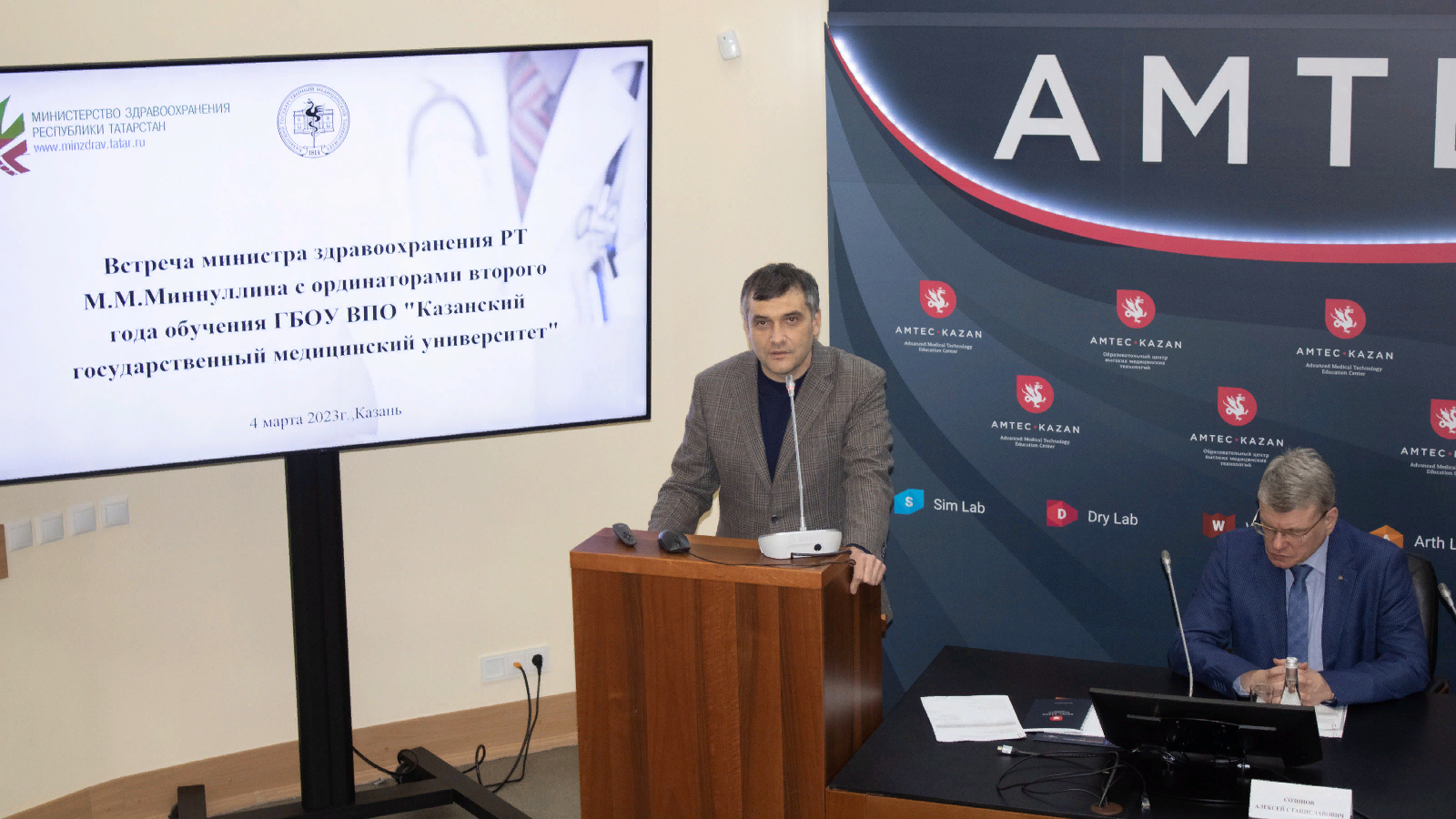 В образовательном центре высоких медицинских технологий АМTEC состоялась встреча Министра здравоохранения РТ Марселя Миннуллина с ординаторами второго года обучения Казанского Государственного медицинского университета.