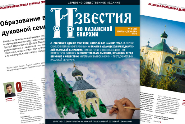 В конце декабря минувшего года вышел в свет третий номер журнала «Известия по Казанской епархии» за 2022 год. Очередной выпуск церковно-общественного издания посвящен 25-летию со дня открытия Казанской духовной семинарии . Журнал возможно приобрести в свечных лавках храмов митрополии.