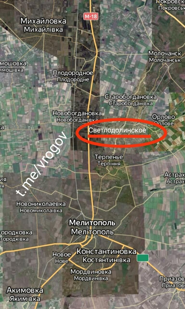 «Сегодня около 12.30 террористы УГИЛ нанесли ракетный удар из РСЗО HIMARS по мосту через реку Молочную в пос.Светлодолинское Мелитопольского района Запорожской области», — говорится в телеграм-канале Рогова.