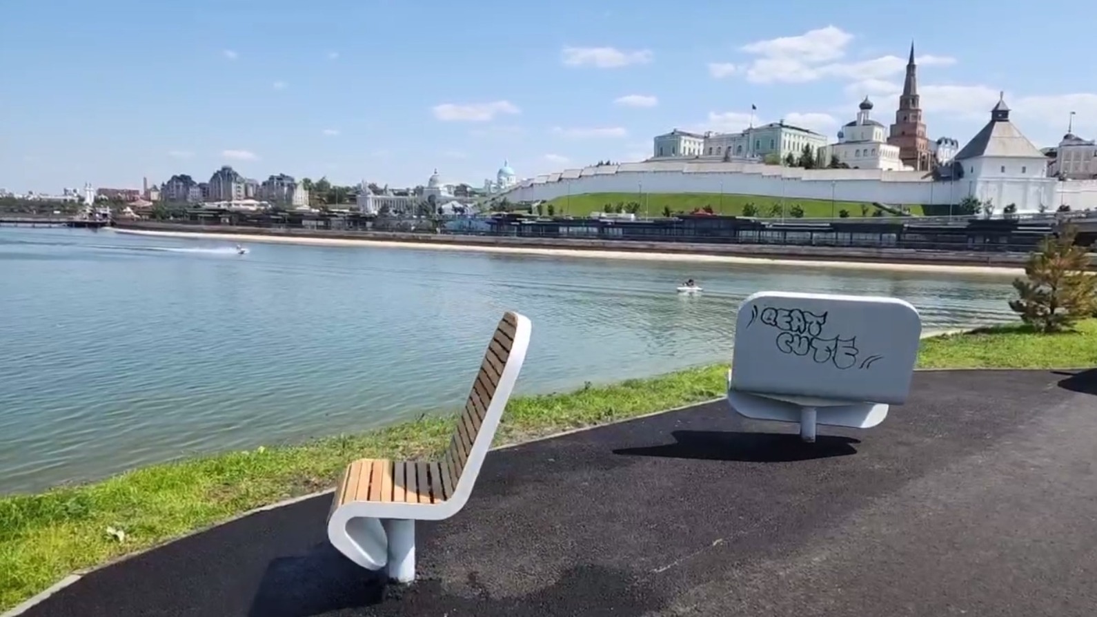 «Изверги»: в Казани испортили новые лавочки на Кремлевской дамбе