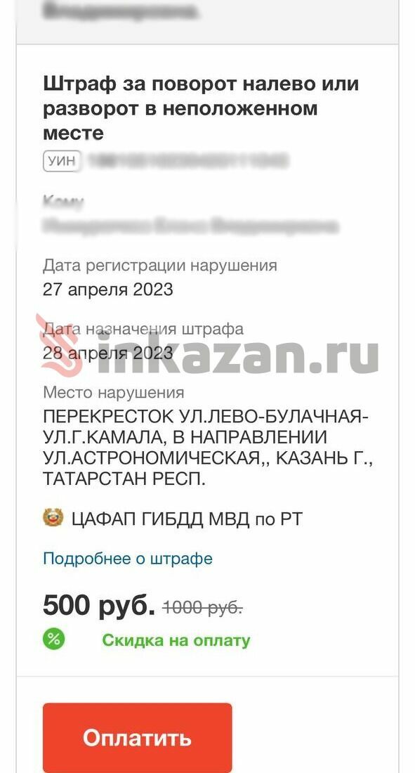 Казанцу пришел штраф за левый поворот на Булаке. Он удивился