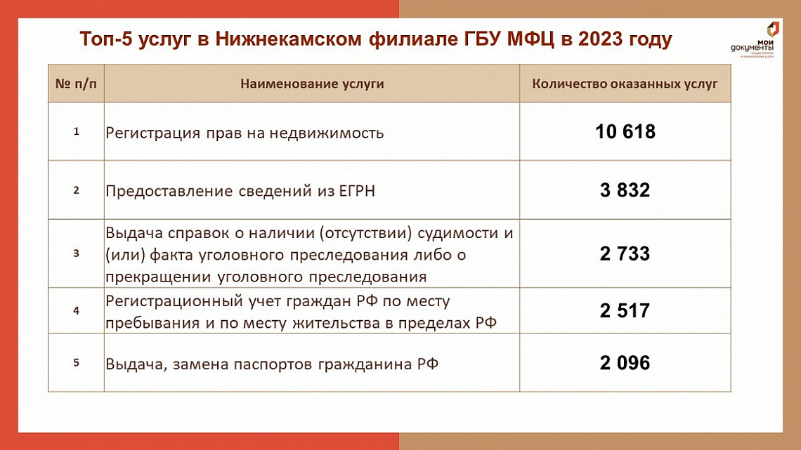 Нижнекамцам рассказали о самых популярных услугах в МФЦ