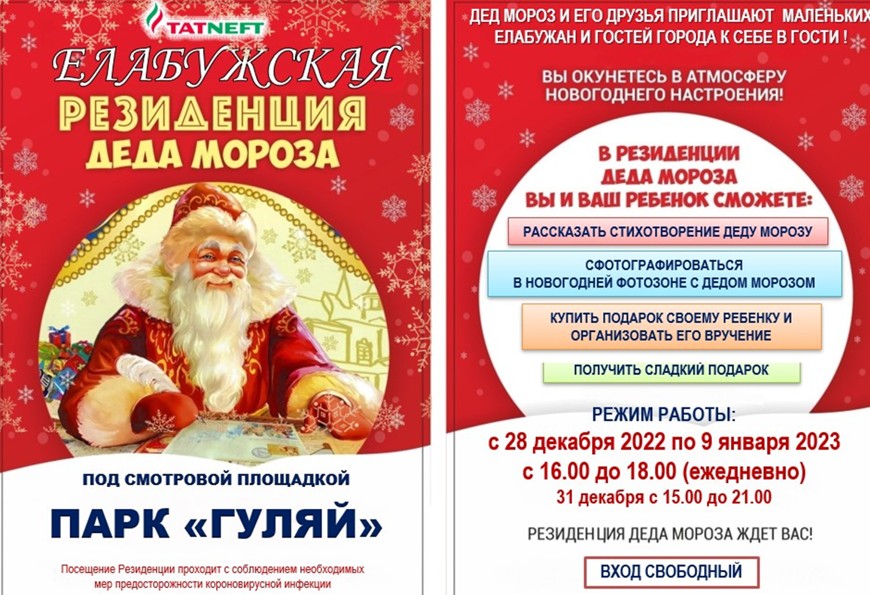 Дед Мороз и Снегурочка приглашают маленьких елабужан и гостей города к себе в гости. Вход свободный.
