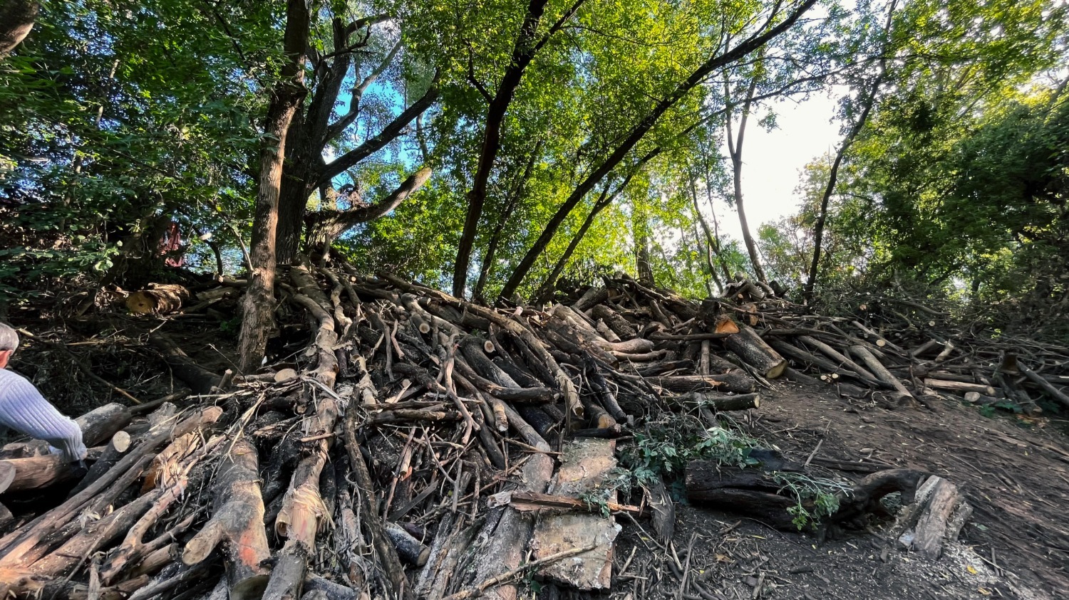 «Работа идет в определенном ритме, потому что все завалы — очень сложно разбираемые, легких как таковых нет, потому что дерево мокрое, залежалое, более твердое, пилы выходят из строя, летят искры», — рассказал Агарков.Кроме того, грузовой транспорт, который вытащил бы все с берега, чаще всего подъехать не может, поэтому в большей степени приходится работать вручную.