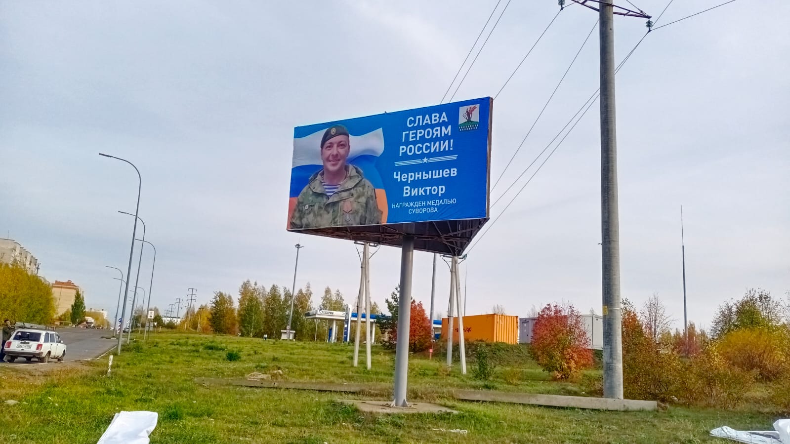 В Елабуге на пересечении улиц ул. Марджани и ул. Окружное шоссе появился новый баннер с портретом участника специальной военной операции. Елабужанин Виктор Чернышев во время спецоперации отличился мужеством и героизмом, за что и получил высокую государственную награду – медаль Суворова.