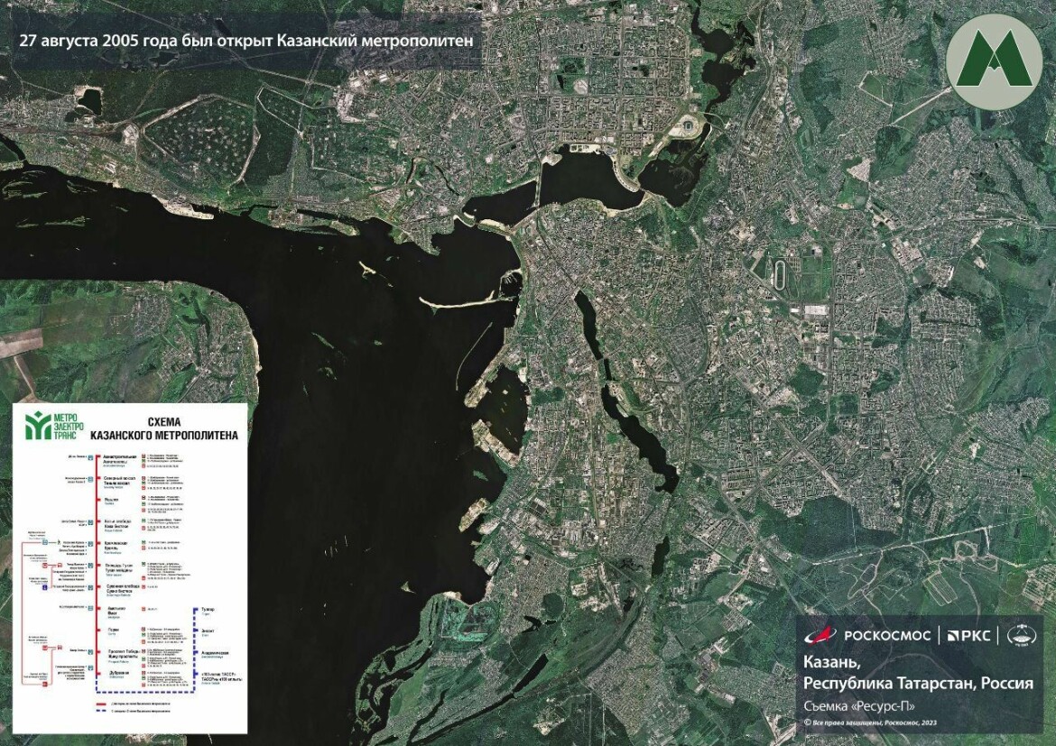 В честь годовщины открытия метро в Казани государственная корпорация «Роскосмос» опубликовала спутниковый снимок города.