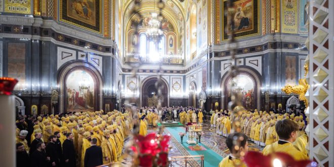 В четырнадцатую годовщину интронизации Святейшего Патриарха Кирилла в Храме Христа Спасителя совершена Божественная литургия