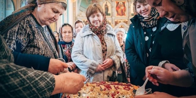 После освящения коливо по традиции раздают верующим.