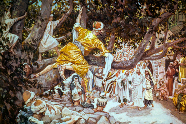 2 И вот, некто, именем Закхей, начальник мытарей и человек богатый, 3 искал видеть Иисуса, кто Он, но не мог за народом, потому что мал был ростом, 4 и, забежав вперед, взлез на смоковницу, чтобы увидеть Его, потому что Ему надлежало проходить мимо нее.