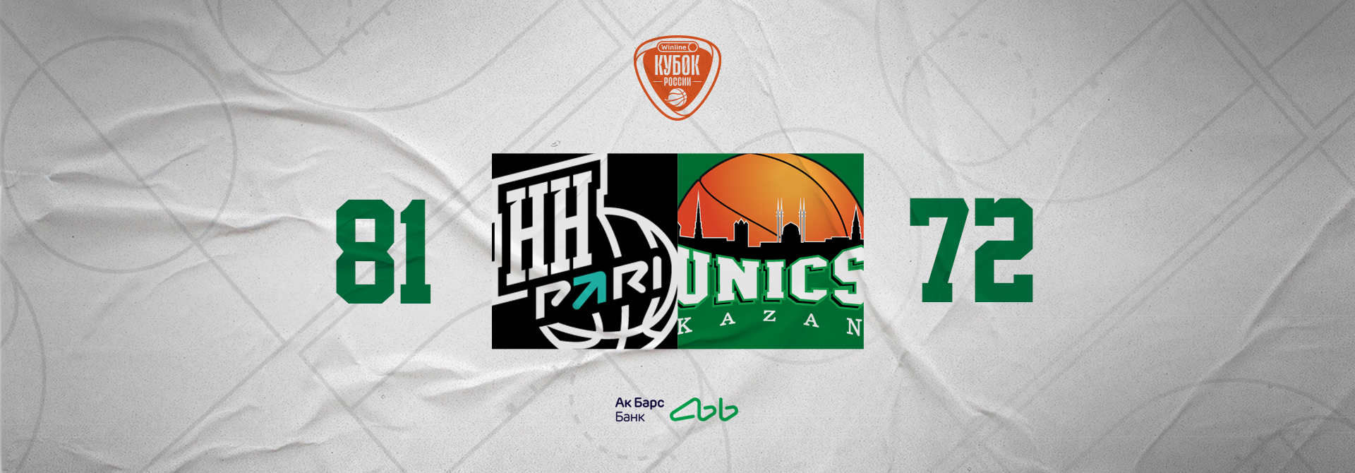 УНИКС уступает «Пари НН» в первом четвертьфинальном матче Winline Кубка России со счетом 72:81 .