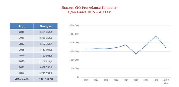 скриншот realnoevremya.ru с итогового отчета РАСКУ «Санатории Татарстана»Впереди, конечно, курортные регионы. Но самый-самый курортный регион, Краснодарский край, потерял. Общие объемы у них выросли, но именно в сегменте санаторно-курортного лечения у них количество отдыхающих стало меньше. Я считаю, что это обусловлено стоимостью путевки в первую очередь. А мы, Татарстан, вроде не курортный регион, но в части санаторно-курортного лечения, оздоровления, отдыха по росту доходов на 4-м месте по стране. Мы выросли на 16%. Порядка 3,5 млрд рублей за 9 месяцев. Мы ждем итоговых данных. Я рассчитываю, что доходы будут рекордными — свыше 5 млрд рублей.