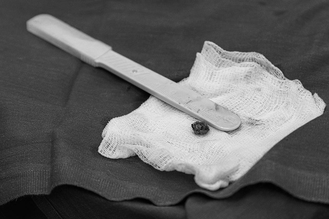 Металлический фрагмент 4 на 7 мм прошел через ключицу, едва не задев легкое, и застрял на стенке желудочка. Операция была настолько сложной, что пациента готовили к ней пять дней.