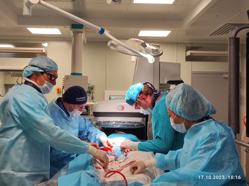 Операции были проведены мультидисциплинарной бригадой медиков, в состав которой вошли хирурги и анестезиологи. Руководили процессом два опытных рентгенохирурга, это специально приглашенный коллега из республиканского кардиоцентра Уфы Тимур Хафизов и заведующий отделением рентгенохирургических методов исследования НЦРМБ Алексей Крохалев. Тимур Хафизов в НЦРМБ не первый раз. Как правило, он приезжает для участия в сложных операциях. Операция для обоих пациентов была жизненнонеобходимой, им установили стент-графты.
