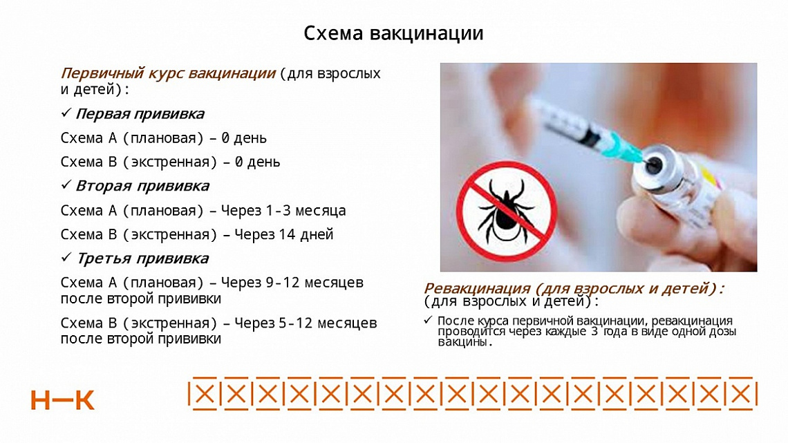«Клещевой энцефалит – это вирусная инфекция, поражающая центральную и периферическую нервную систему. Тяжелые осложнения острой инфекции могут завершиться параличом и летальным исходом», – продолжила тему главный эпидемиолог управления здравоохранения по НМР Елена Пискарева. Елены Пискарева отметила, что главным способом защиты от клещевого энцефалита является вакцинация. Обычно вакцинация проводится до начала сезона активности клещей. Первую и вторую прививку предпочтительно проводить в зимние или весенние месяцы. После курса первичной вакцинации, ревакцинация проводится через каждые 3 года в виде одной дозы вакцины. Следует отметить, что вакцина в медучреждения города поступает по предварительной заявке, которую предприятия и организации могут подавать по июль.