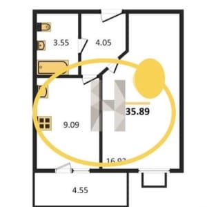 - Общая площадь: 35.9 м²
