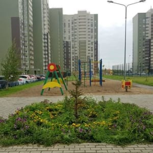 Во дворе дома детская площадка,площадка для занятия спортом и отдыха.Всегда есть парковочное место для автомобиля.