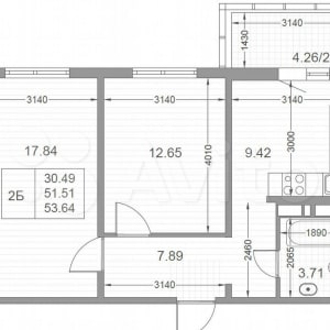 - Общая площадь: 53.6 м²