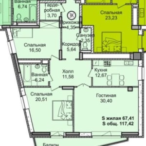 - Общая площадь: 117.4 м²